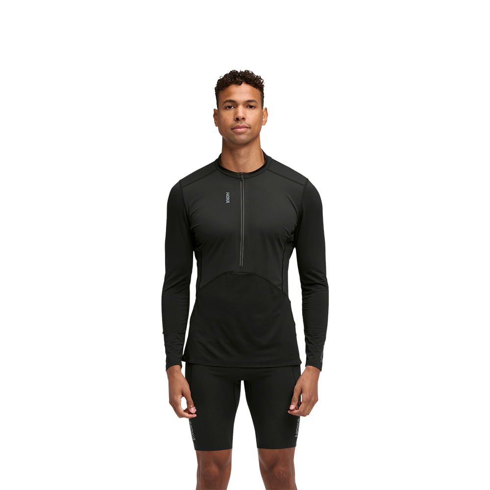 Peça ajustada ao corpo garante uma termorregulação ideal se adaptando com facilidade às variações de temperatura. Na parte inferior do corpo e nas mangas apresenta a tecnologia DriRelease® que mantém o aquecimento na queda de temperatura. Na parte das costas tem um tecido em malha tipo colmeia, que ajuda a reduzir a umidade na área onde fica a mochila de hidratação, a peça conta ainda com um zíper para ajudar na ventilação. Características: Mistura de materiais, secagem rápida, absorção e gerenciamento do suor, gola com construção anti atrito, zíper frontal para ventilação durante o uso e detalhes refletivos COMPOSIÇÃO: 34% Poliéster, 52% Poliéster reciclado, 7% Lã, 7% Elastano